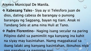 Pepay Ang mananayaw na sinasabing matalik na kaibigan daw ni Don Custodio. Ito ang mga tauhan sa El filibusterismo ni Jose Rizal. Ab Tiyo Kiko - matalik na kaibigan ni Camaroncocido.
