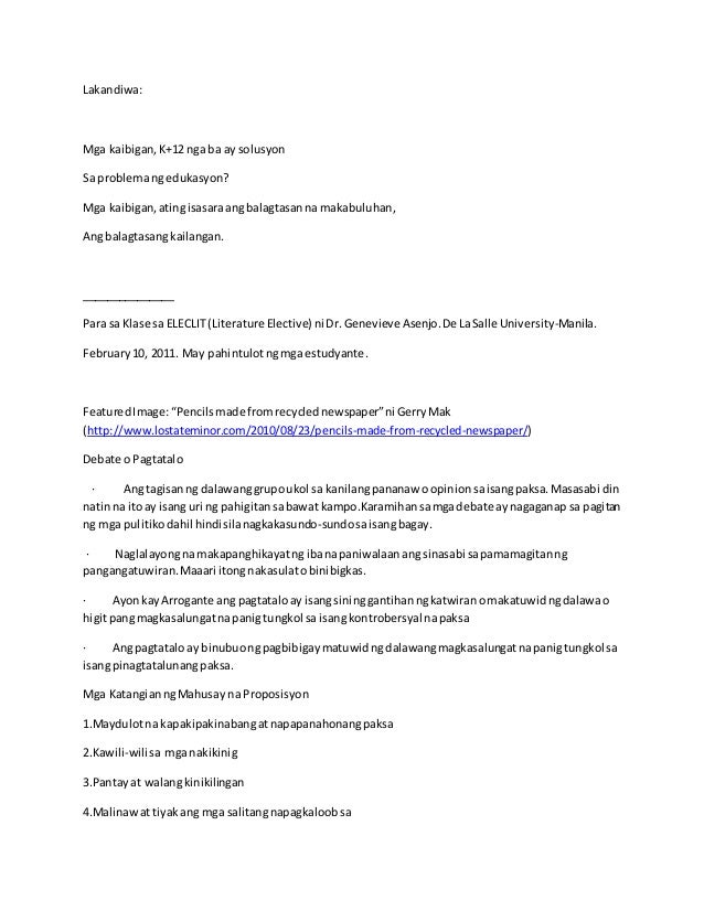SANAYSAY TUNGKOL SA EDUKASYON Sa paksang ito tatalakayin natin kung ano nga ba ang sanaysay at ang mga halimbawa ng sanaysay tungkol sa edukasyon nito. Hanap mo ba ay mga halimbawa ng talumpati tungkol sa kabataan. 10072014 Di - Pormal.